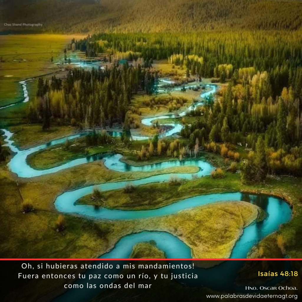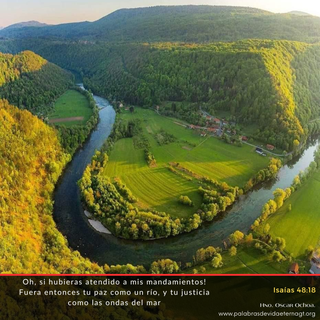 «Oh, si hubieras atendido a mis mandamientos! Fuera entonces tu paz como un río, y tu justicia como las ondas del mar». (Is. 48:18)