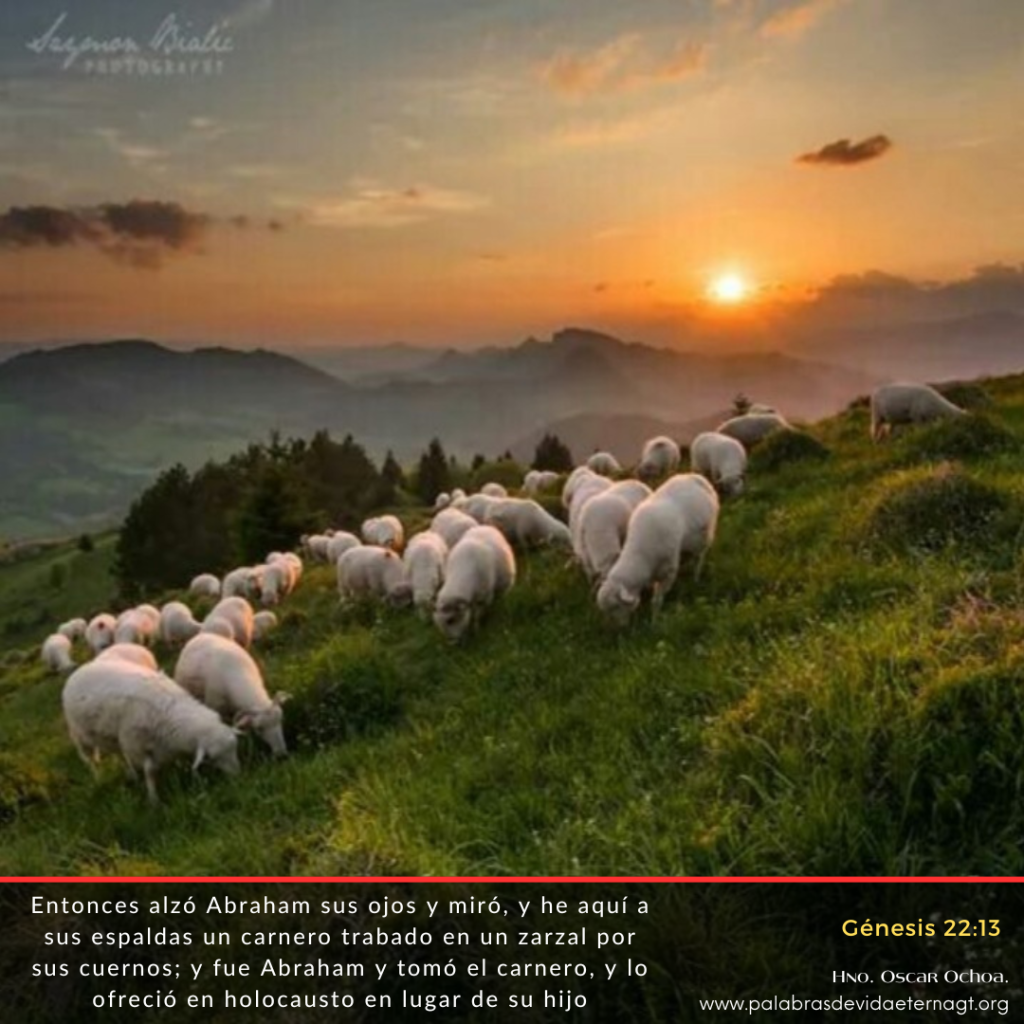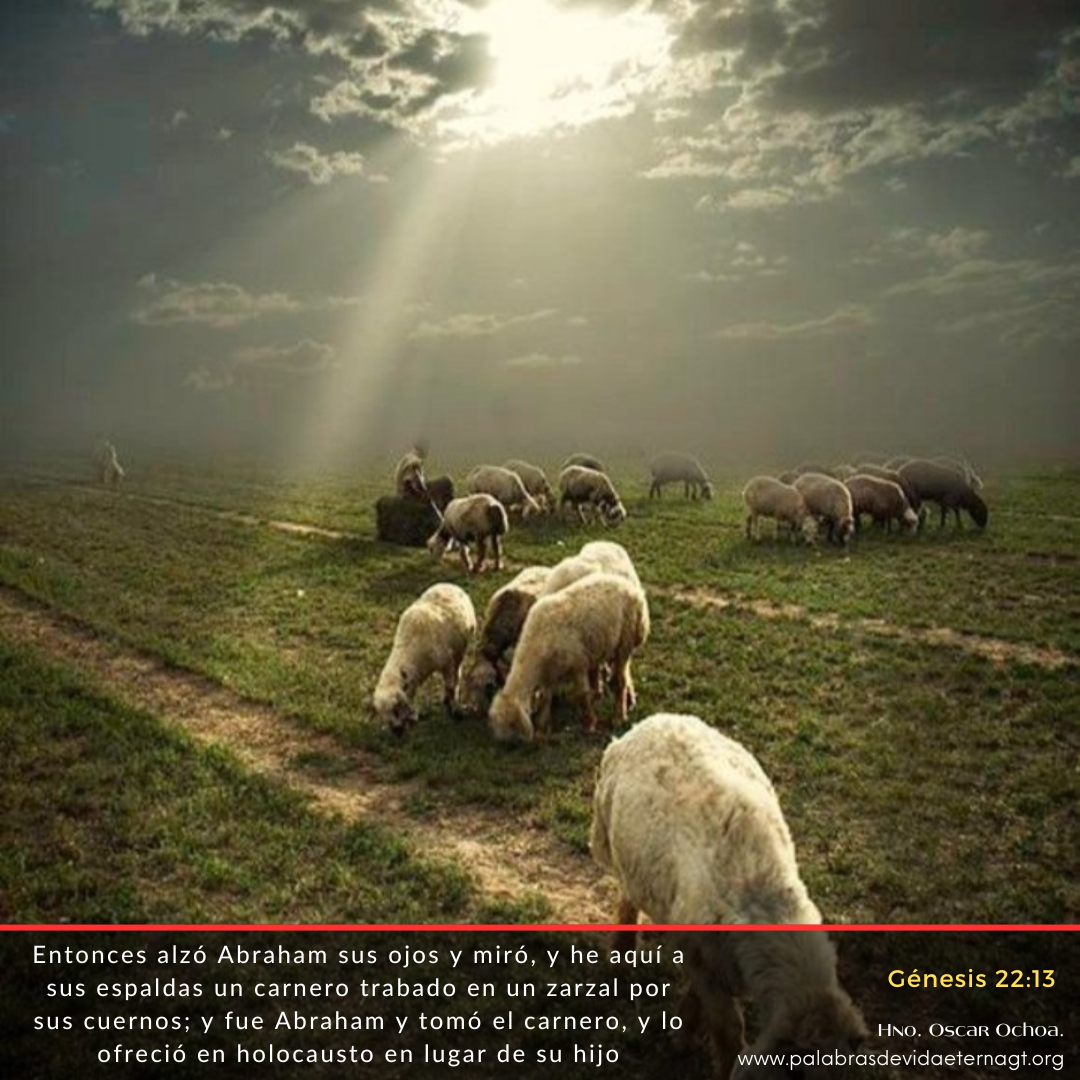 Vers. Clave: «13 Entonces alzó Abraham sus ojos y miró, y he aquí a sus espaldas un carnero trabado en un zarzal por sus cuernos; y fue Abraham y tomó el carnero, y lo ofreció en holocausto en lugar de su hijo» (13)