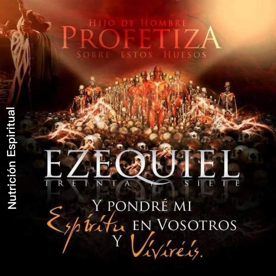 “La mano de Jehová vino sobre mí, y me llevó en el Espíritu de Jehová, y me puso en medio de un valle que estaba lleno de huesos. Y me hizo pasar cerca de ellos por todo en derredor; y he aquí que eran muchísimos sobre la faz del campo, y por cierto secos en gran manera. Y me dijo: Hijo de hombre, ¿vivirán estos huesos? Y dije: Señor Jehová, tú lo sabes. Me dijo entonces: Profetiza sobre estos huesos, y diles: Huesos secos, oíd palabra de Jehová. Así ha dicho Jehová el Señor a estos huesos: He aquí, yo hago entrar espíritu en vosotros, y viviréis. Y pondré tendones sobre vosotros, y haré subir sobre vosotros carne, y os cubriré de piel, y pondré en vosotros espíritu, y viviréis; y sabréis que yo soy Jehová». – Ezequiel 37:1-6