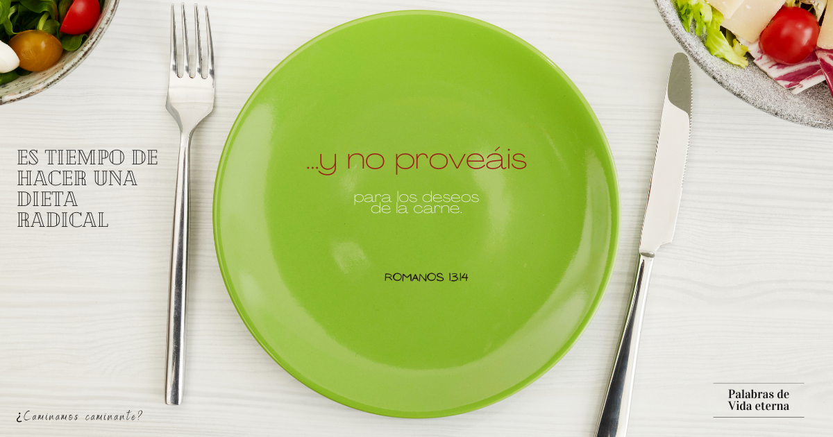 Si, es tiempo de tener una dieta, no balanceada, no, claro que no, sino una radical, muy radical a tal punto de morir de inanición. La frase «no proveer para los deseos de la carne», significa eso, no proveer para todo lo que aliente a la carne, la carne ese aspecto negativo en donde el pecado ha encontrado un reposorio del mal en el salvado por su condición de salvado pero no glorificado aun. La carne que no se sujeta a Dios y ni tampoco puede (Romanos 8:7), que el ocuparse de ella conlleva muerte y condenación (Romanos 8:1,6) y por eso es que no pueden agradar los tales a Dios (Romanos 8:8); con razón leemos que para nada aprovecha (Juan 6:63).