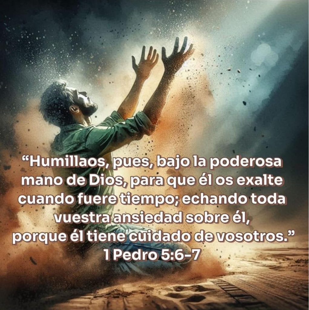 «Humillaos, pues, bajo la poderosa mano de Dios, para que él os exalte cuando fuere tiempo; echando toda vuestra ansiedad sobre él, porque él tiene cuidado de vosotros.» – 1 Pedro 5: 6-7