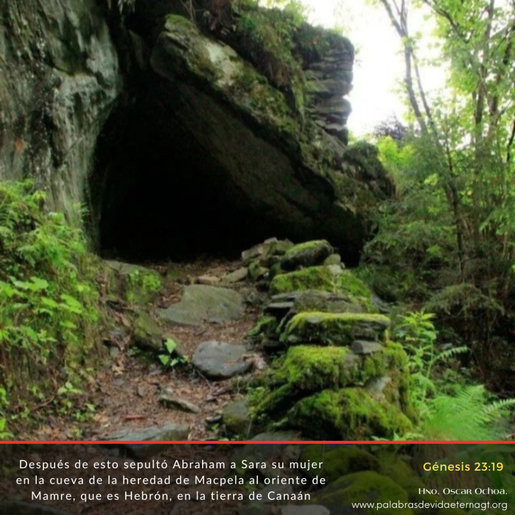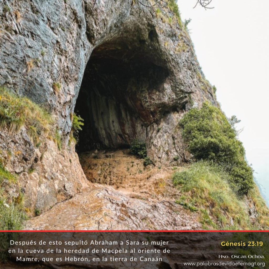 Vers. clave:»Después de esto sepultó Abraham a Sara su mujer en la cueva de la heredad de Macpela al oriente de Mamre, que es Hebrón, en la tierra de Canaán». (19).