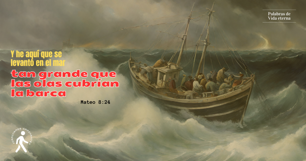 «Y he aquí que se levantó en el mar una tempestad tan grande que las olas cubrían la barca; pero él dormía».